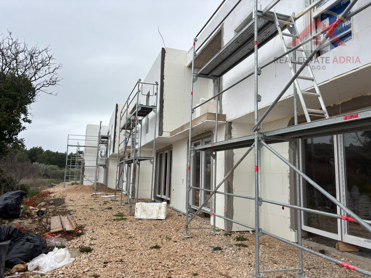 Two-story apartment for sale, terraced house, Sv. Filip and Jakov, Dalmatia, Zadar, Croatia! New construction. Start of construction 06/2024. expected construction completion date 06/2025. Pre-bookings are recorded. Each terraced house has its own separate entrance, yard or garden of 44 m2 and FREE outdoor parking consists of a ground floor and a first floor. The ground floor consists of: entrance, staircase to the first floor, toilet, kitchen, dining room and living room, terrace and garden. The floor consists of: one large bedroom, and two smaller children's rooms, a large bathroom, a staircase and a balcony. Each apartment is a terraced house with a net area of ​​100 m2. Modern construction. In an exceptional location in the town of Drage, 550 m (by footpath) and the town center, about 800 m from the sea to the beach. The nearest beach is Slanica beach in Dolaška Draga.