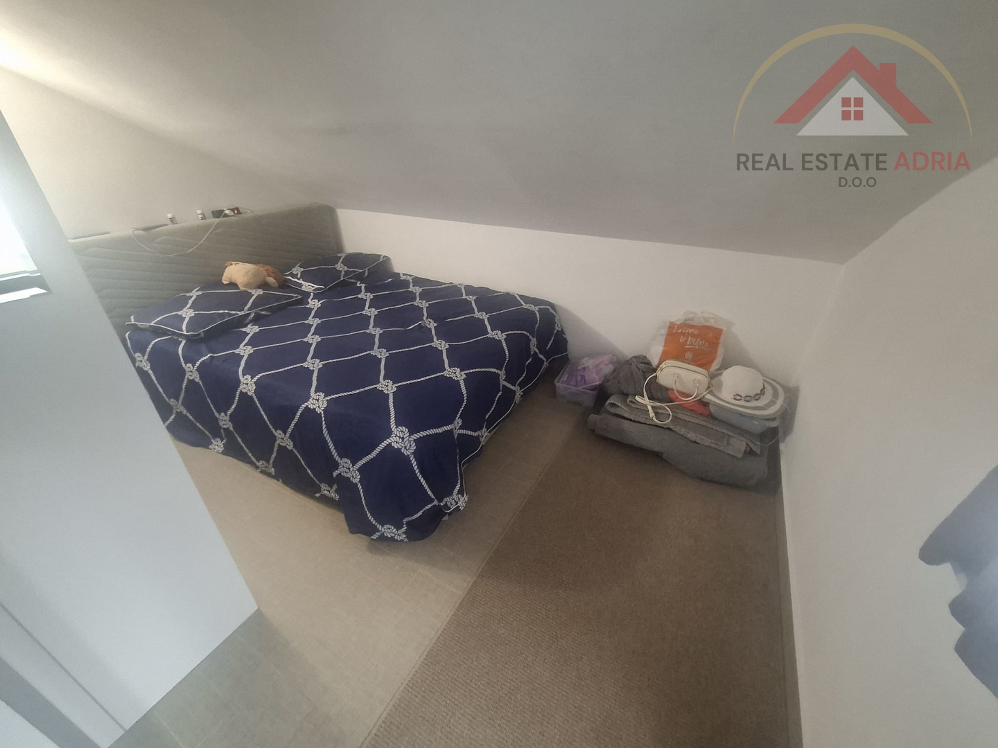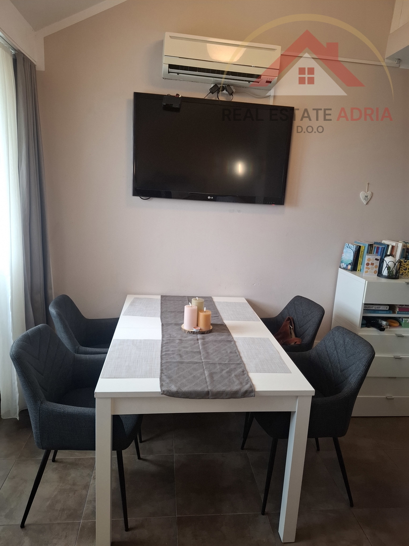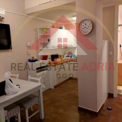 Iznajmljuje se lijep, pun danjeg svjetla, stan u Biogradu na Moru u samom centru grada sa pogledom na cijeli grad, poluotok, more i otoke. Stan je ukupno površine 44,50 m2. Stan se sastoji od hodnika, kupaonice sa tušem i wc-om, ima otvoreni koncept na slovo L dnevni boravak-kuhinja i blagovaona, te spavaće sobe u kojoj se nalazi bračni ležaj i ugradbeni ormar. Stan je opremljen sa svim aparatima i namještajem (frižider, klima uređaj, norveški radijatori 2 kom, tv, perilica za rublje, kauč na razvlačenje, stol i stolice, posuđe.... Stan se nalazi na 5-tom katu zgrade, ujedno i zadnjem katu u zgradi. Ima visoko potkrovlje te ostave za razne stvari u policama u dijelu stropa. Idealan je za mlade parove. Cijena najma je 650,00 eura mjesečno. Najmoprimac ne plaća agencijsku proviziju.